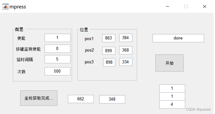 最近工作中调试代码的过程中遇到一些问题,要不断的用鼠标点击,对于技术人员来说,这种工作可以划分到体力劳动范围了,由于要点击的位置比较多,普通的鼠标点击工具无法满足自己的需求,好奇懒惰的我,开始用matlab(其他的也不会..)动手做了一个鼠标点击的小工具,再一次感叹matlab的强大。