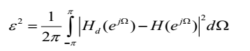理想滤波器的频率响应 Hd()和设计出的滤波器的频率响应 Hd()的积分平方误差定义为: