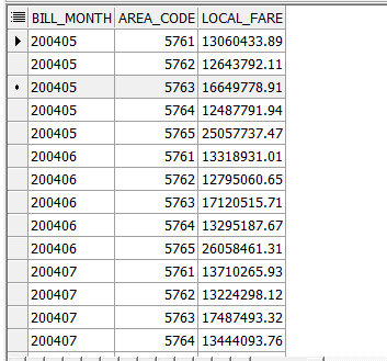 select bill_month, area_code,sum(local_fare) local_fare,
