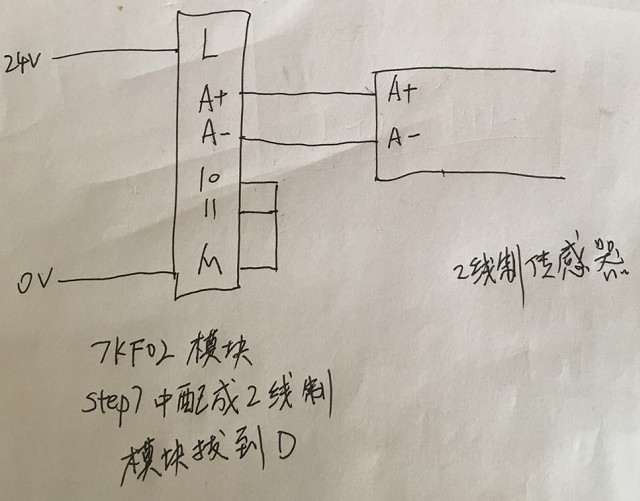 从6-14图(参考s7-300模块数据手册)可以看出,7KF02模块在接两线制传感器的时候,不需要串接一个电源。因为通道在配成两线制之后,在AI+和AI-两个端子之间,自动会有24V的电供出去。