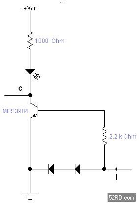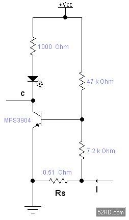 如果简单的用三极管导通与截止来检测电流的话,三极管开启要0.7V左右,电流比较小的时候需要串比较大的采用电阻,同时浪费较大的反馈电压,如上图方法,可以用比较小的电阻,消耗很小的电压就能检测到电流I,通过调整三极管基机电阻可以调整检测的灵敏度。这个电路可以用在充电器等需要显示有没有充电电流的地方。