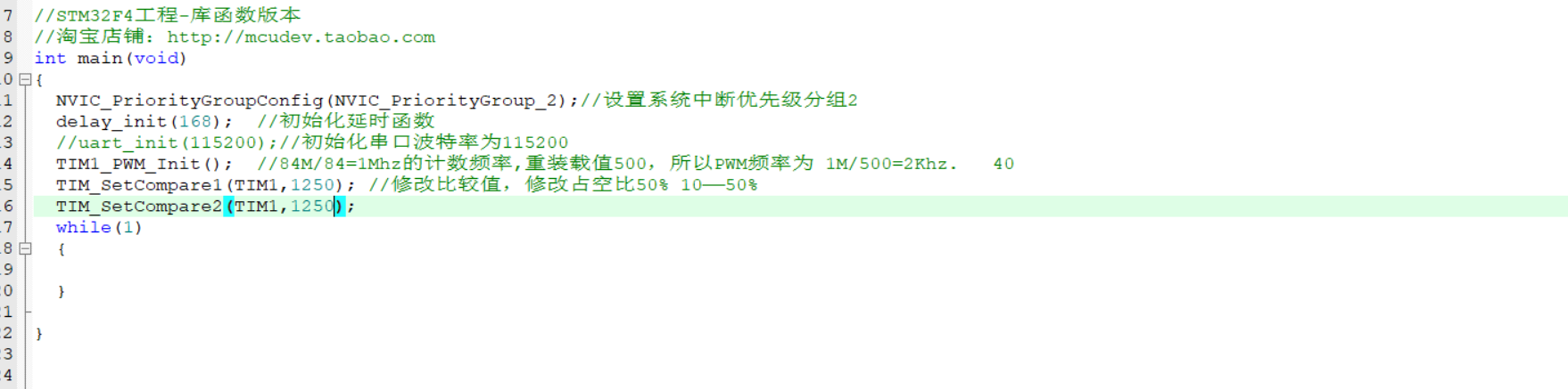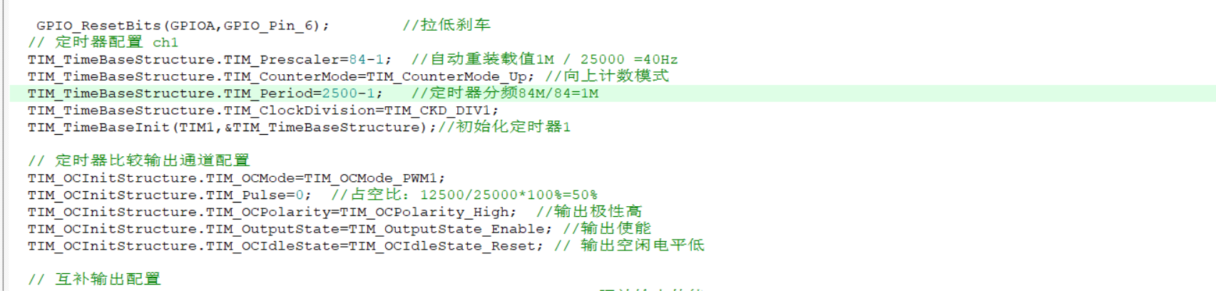 //占空比的设定 通过修改比较值 比较值/分频系数 就为占空比