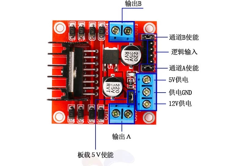 由于该驱动为 L298N 双 H 桥直流电机驱动芯片