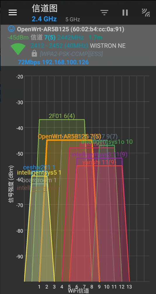 小结论:频宽太高统一被其他信号干扰,信道太拥堵也容易被其他信号干扰,一些宣称大功率、广覆盖的路由会占用比较宽的信道,主动干扰其他信号