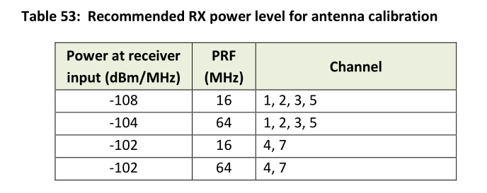 为了在校准过程中达到最高精度,建议使用接收机的功率输入来校准天线延迟,参数级别如下