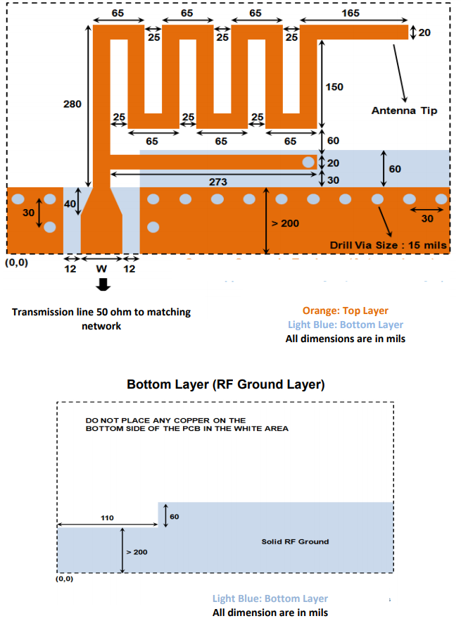 对于为天线馈电更短的 PCB 走线,W宽度要求是比较宽松的。只要确保天线走线的宽度和天线馈电接点的宽度相同。