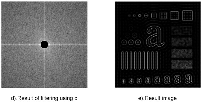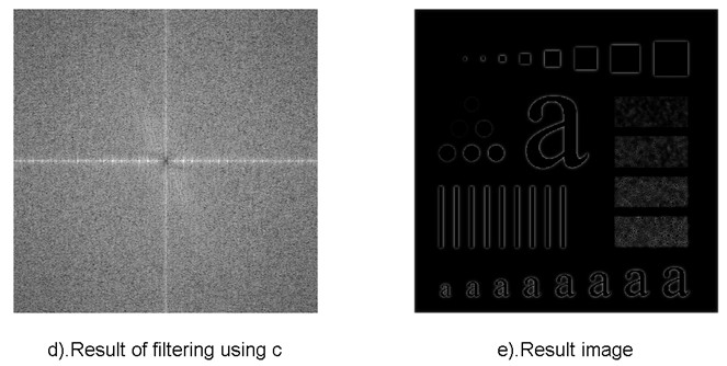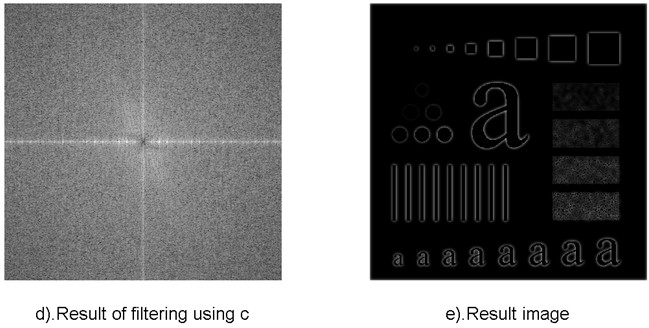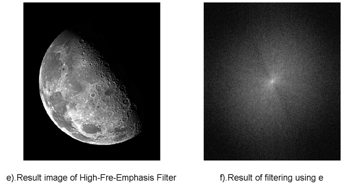 xlabel('e).Result image of High-Fre-Emphasis Filter');