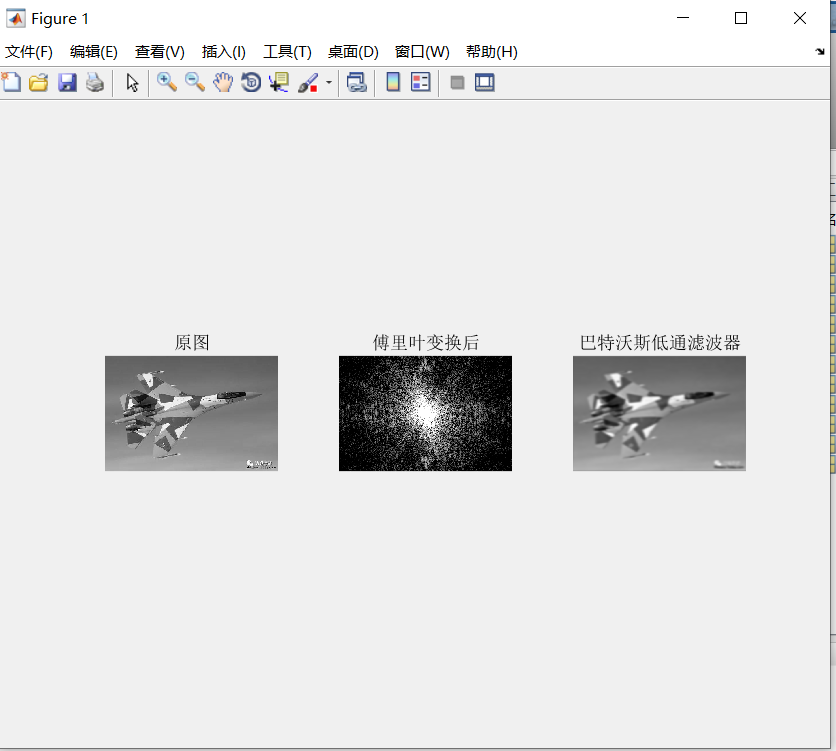 subplot(133);imshow(I2,[]);title('巴特沃斯低通滤波器');