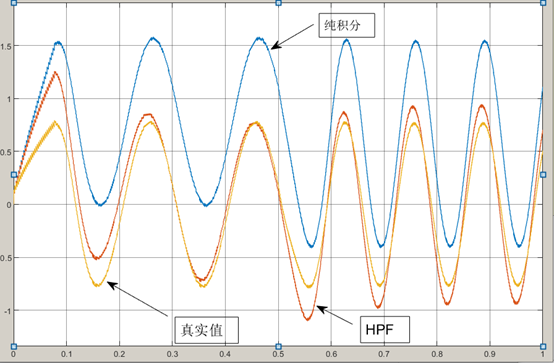 从图3可以发现,变电机参数定子电阻引起被积项产生误差,纯积分项引起直流偏置和相位误差,用高通滤波器替换纯积分项后在一定程度上改善直流偏置和初始值问题。但使用HPF,观测值相比较于实际值,仍然存在幅值和相位的误差。