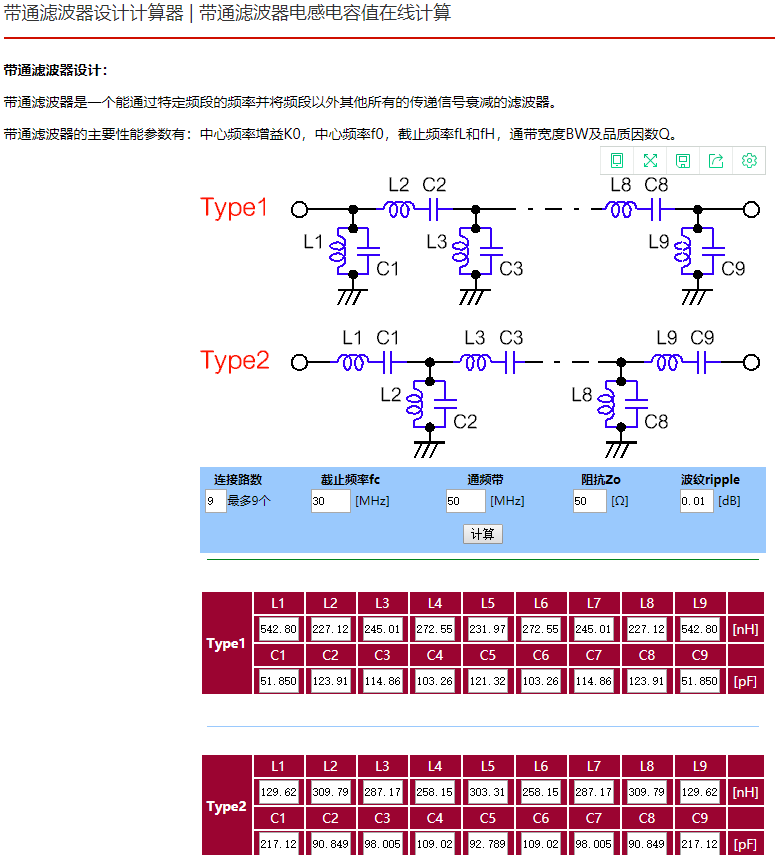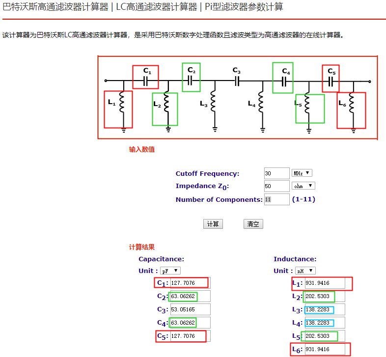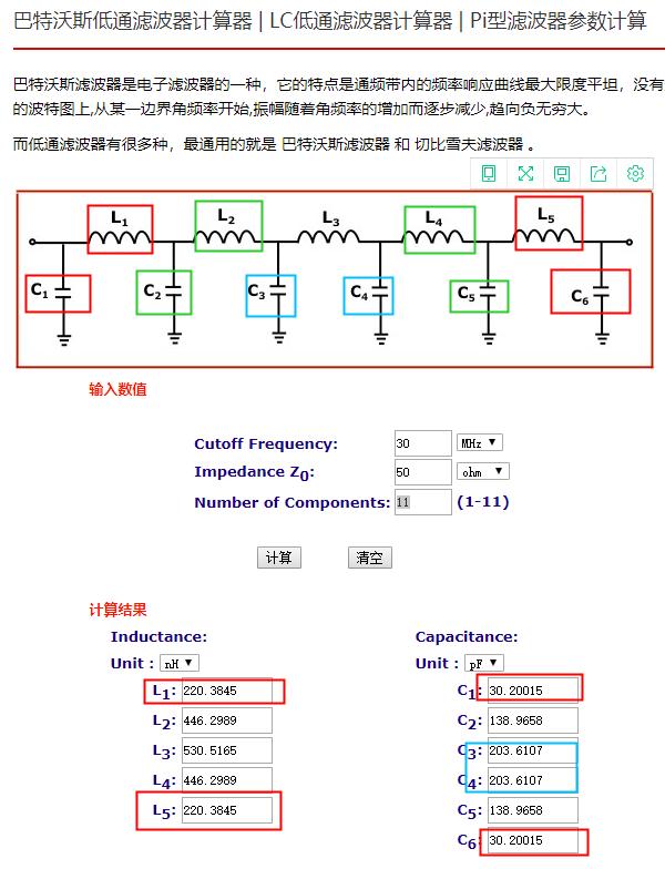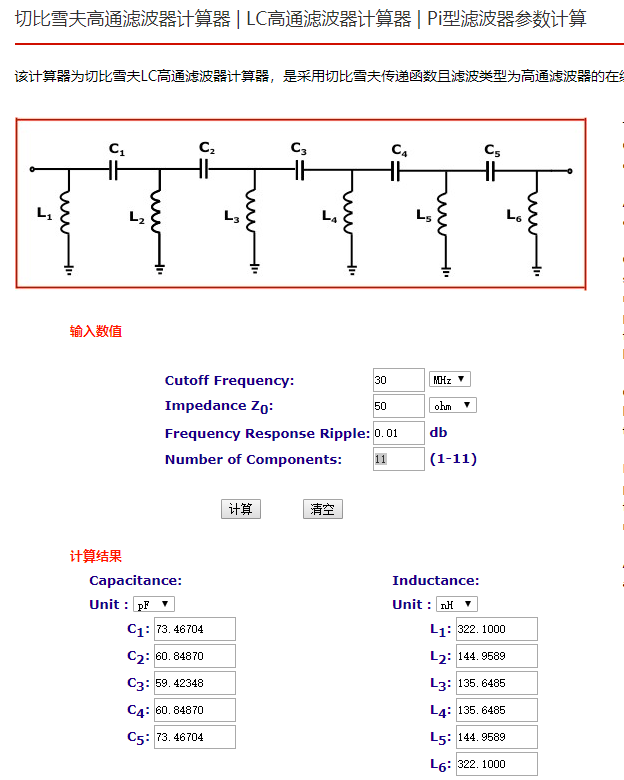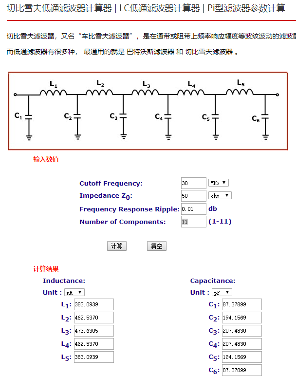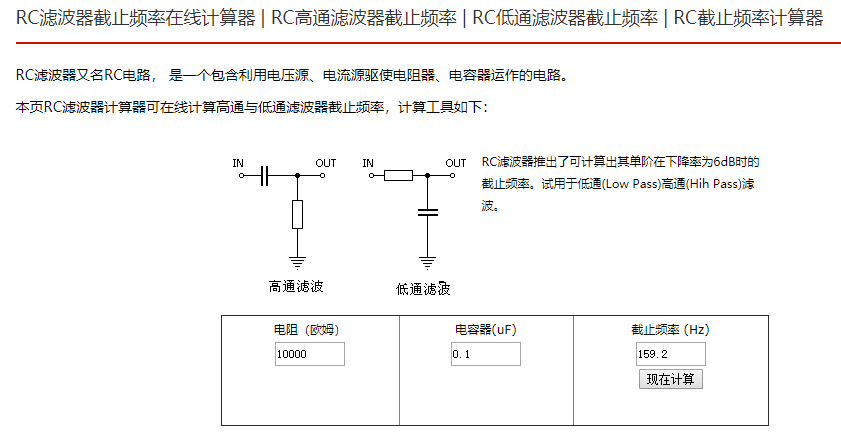 滤波器电阻电容电感计算工具:http://www.elecfans.com/tools/batewosigaotong.html