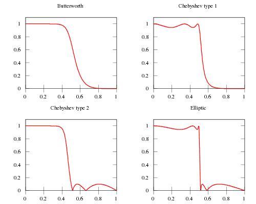 低通滤波器有很多种,其中,最通用的就是巴特沃斯滤波器和切比雪夫滤波器。