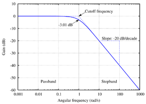 电子滤波器等信号传输通道中的诸如低通、高通、带通、带阻等频带特性都应用了截止频率的概念。截止频率有时被定义为电子滤波器的导通频带和截止频带的交点,例如电路标称输出信号减3分贝的位置的频率。在带阻滤波器中,截止频率则被定义在输出信号能量大幅上升(或大幅下降)、失去“阻止”(或失去“通过”)信号效果的位置。在波导管或者天线的例子中,截止频率通常包括上限频率和下限频率。