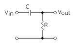 右图所示为一个一阶的高通滤波器。它的截止频率由下式决定:
