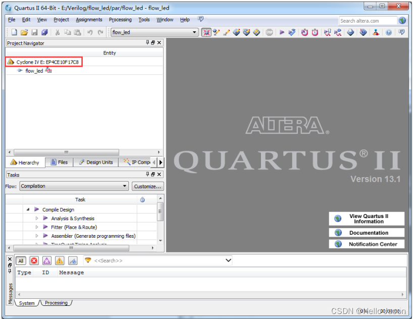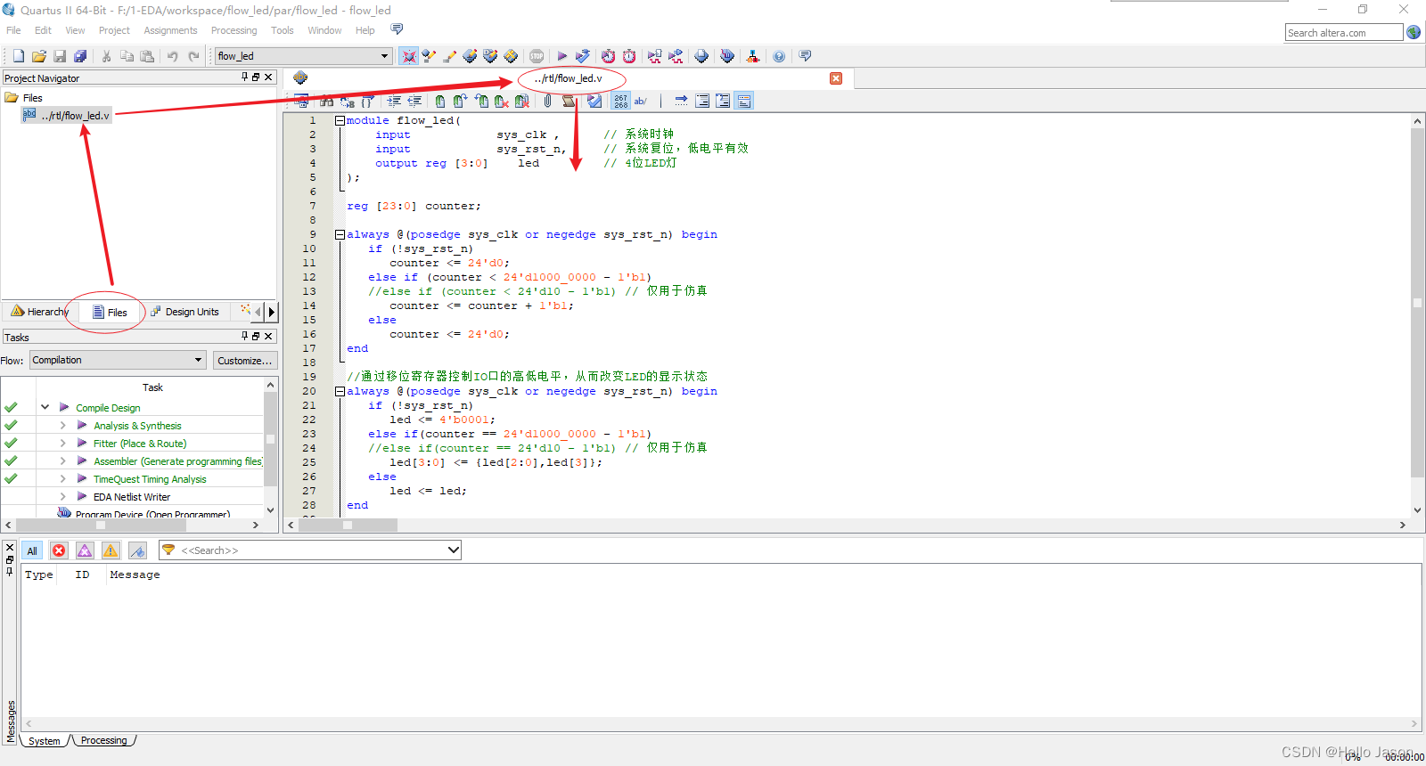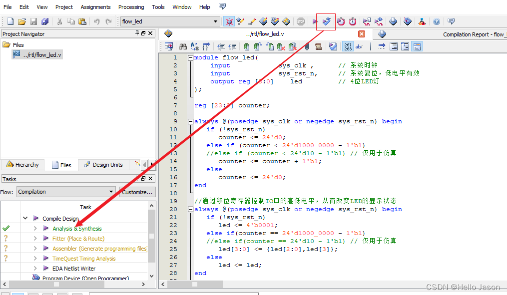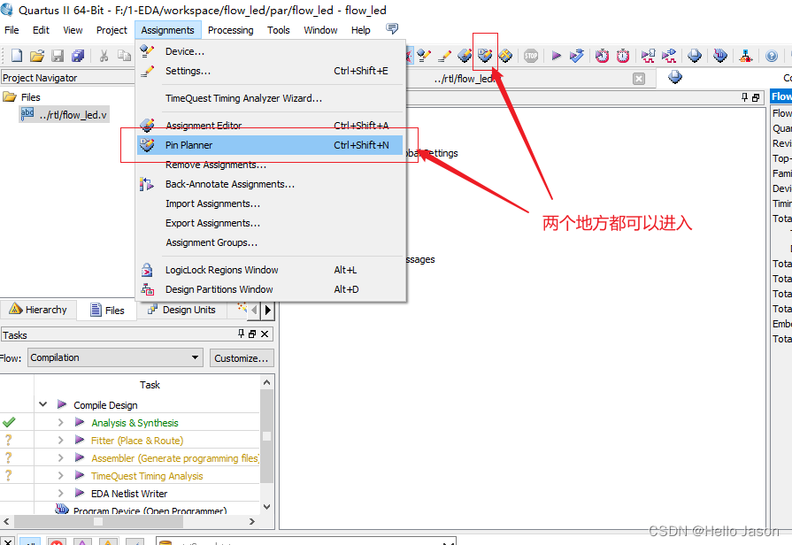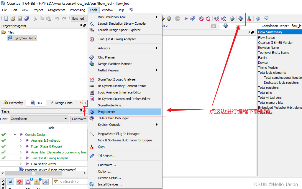 以上就是殷勤小猫咪最近收集整理的关于一、Quartus II软件的使用 一、打开软件二、新建工程 三、设计输入四、配置工程 五、分析与综合( 编译) 6、分配引脚七、 编译工程 八、下载程序九、固化程序的全部内容,更多相关一、Quartus内容请搜索靠谱客的其他文章。
