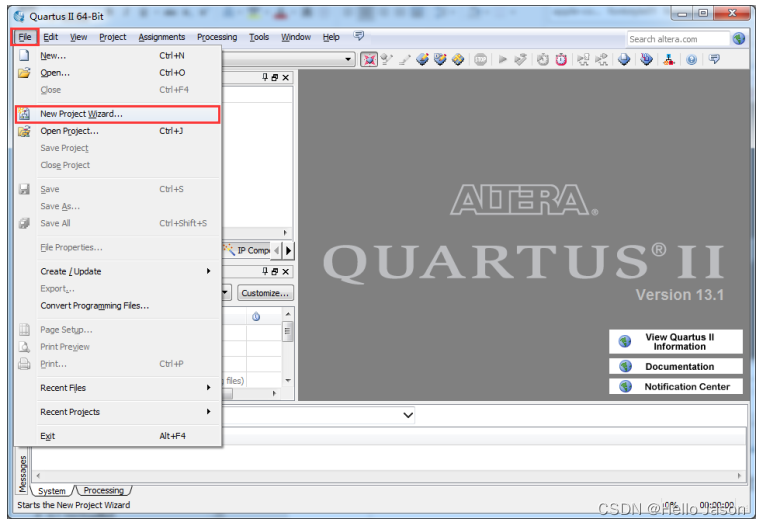选择【 File】→【 New Project Wizard…】来新建一个工程