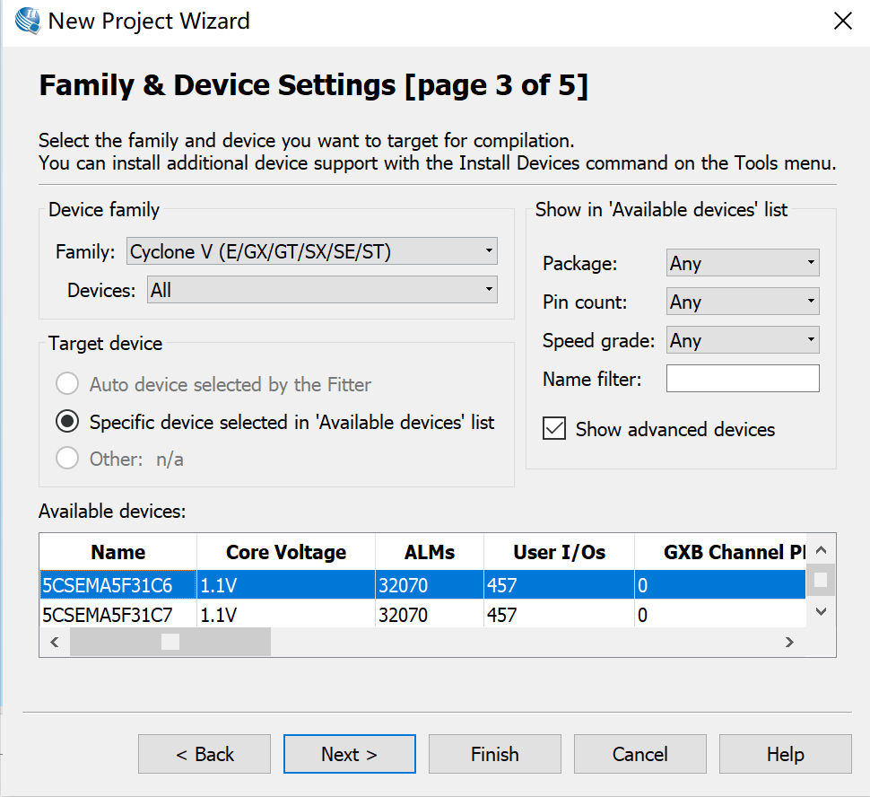 选择你需要使用的FPGA芯片型号,可在name filter中查找。