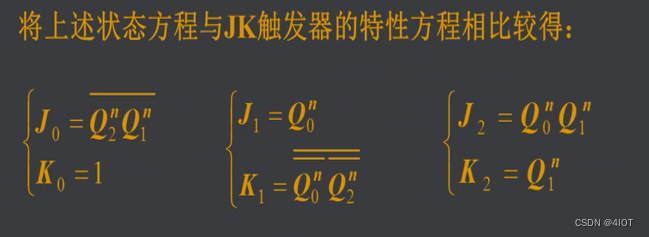 把驱动方程,带入JK触发器的特性方程里,得出状态方程