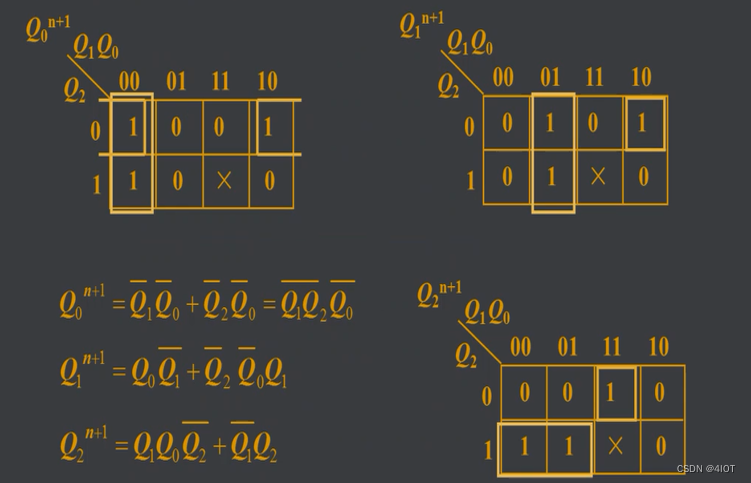 | 步骤二 | 驱动方程 输出方程 状态方程 | D1= D2= D3= …… Q1^n= Q2^n= Q3^n=…… Q1^(n+1) Q2^(n+1) Q3^(n+1)…… |