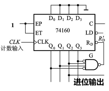 【例子】:要求我们用74160(十进制计数器)构成24进制计数器