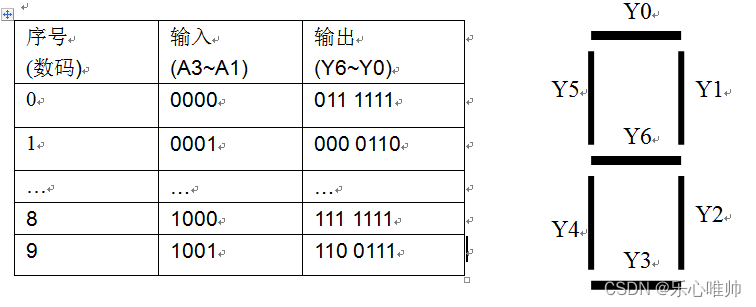 8.27 用CASE语句设计一个4位BCD码输入的7段数码管显示的译码电路,真值表所描述BCD码转换为七段数码的电路。