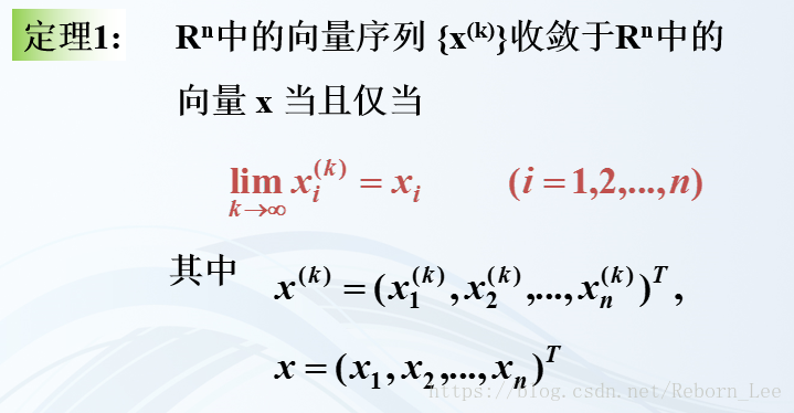 向量序列收敛于某个向量,当且仅当该向量序列的每个元素都收敛于相应的向量的元素: