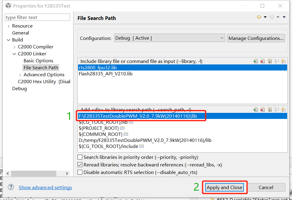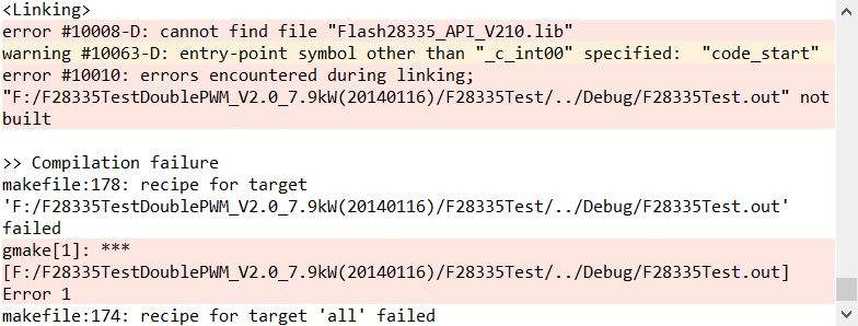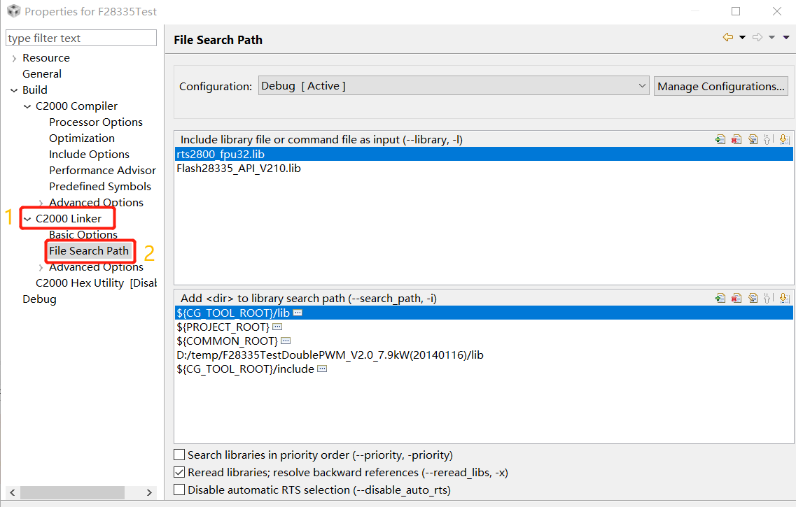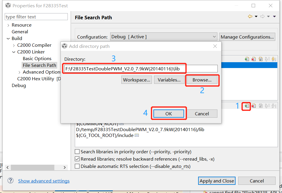 导入后编译不通过,出现错误,错误显示找不到Flash28335_API_V210.lib库文件
