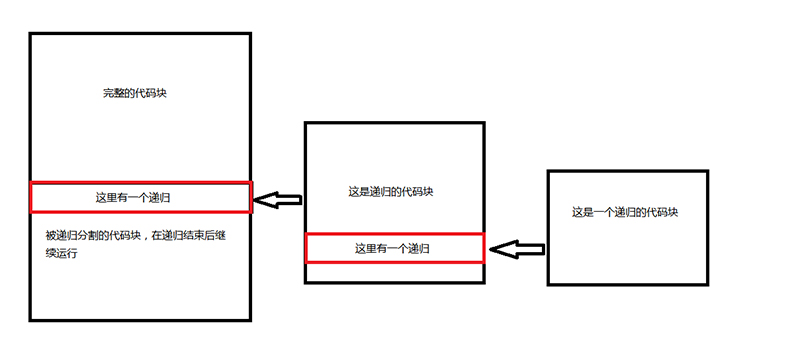 结论:使用递归时,递归会一层一层的进去,最后一个递归运行结束后,会一层一层的出来。并且出来后会继续运行被递归分割的代码。