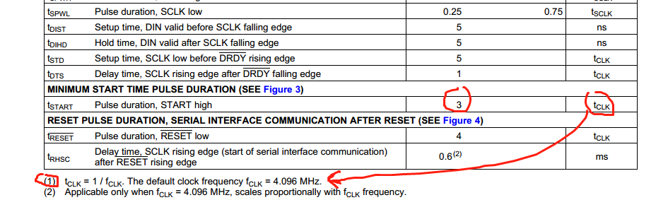 //tSTART Pulse duration, START high 3 tCLK