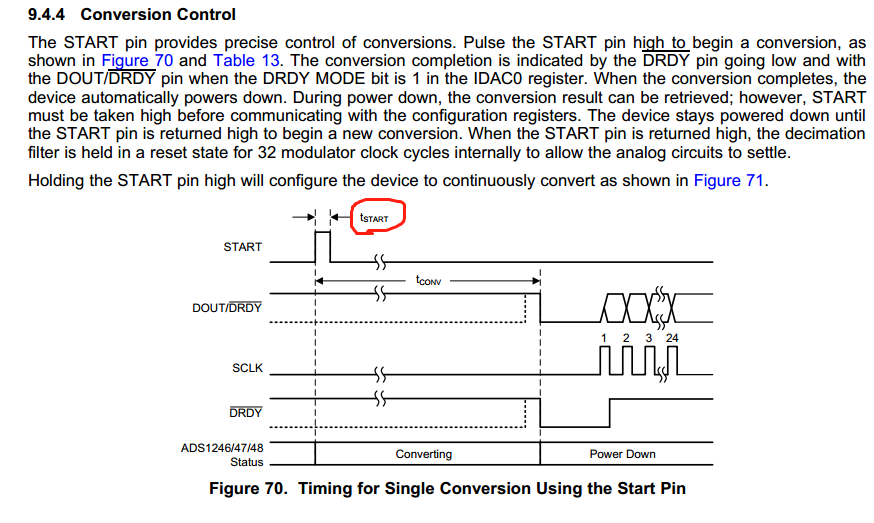 START:如果使用单次AD转换只需要将该引脚拉高在拉低就可以,时序入下图: