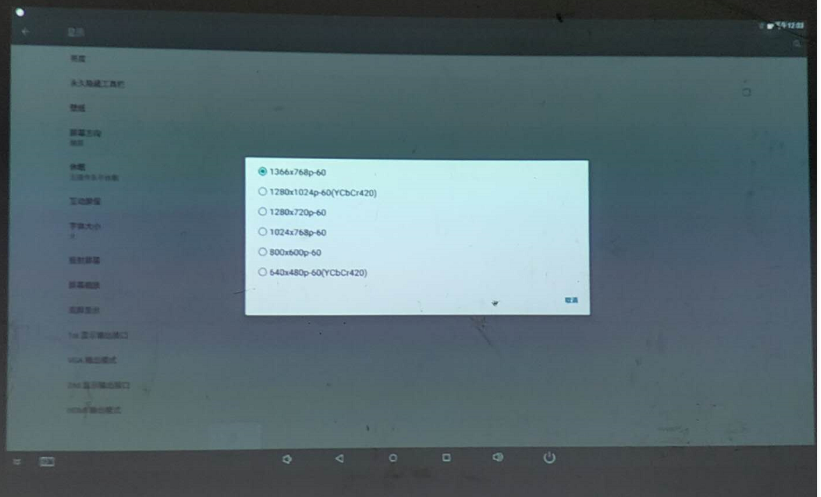 这时,我做了个测试,发现,把电视盒用HDMI转VGA接电脑的显示器,发现显示器正常。这就怪了,难道是投影仪的问题?难道是投影仪的VGA接口,无法匹配太高分辨率?看来,这个投影仪得换掉了,想到要花大价钱去买个新的宽屏投影仪,我只能选择放弃了。