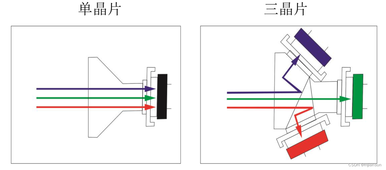 3CMOS是包含3个独立CMOS传感器,每个传感器支配红、绿、蓝(RGB),能够生成分辨率高达1920x1080像素的高清信号的器件。