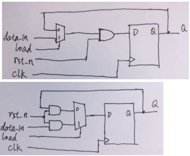 这两个电路的功能完全一样,只不过右边电路的复位控制逻辑(即复位与门)在多路复用器之外,也就是远离了触发器。这在门级仿真的时候(注意这是仿真),当....