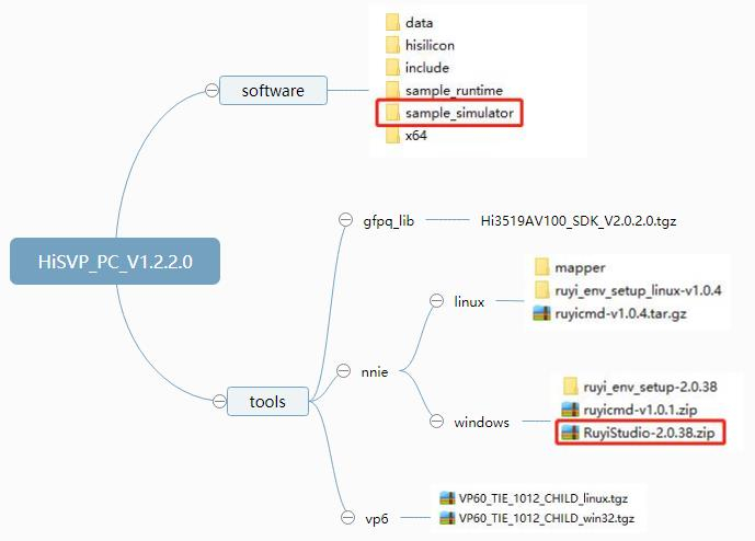 4)HiSVP_PC_V1.2.2.0、HiDPU_PC_V2.0.0.0、HiIVE_PC_V2.1.0.8_64,分别为nnie推理(AI部分)、双目三维成像、视频图像算法(边缘检测、运动跟踪等)。