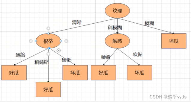 在这个数据中,2个好瓜,1个坏瓜,认为替换后的叶结点标记为好瓜。