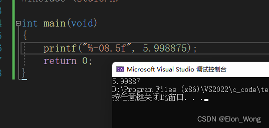 这是因为我们在%符号后面加了一串东西:- 0 8 .5。不知道大家还记不记得printf函数的中文名字叫什么?