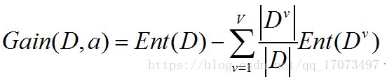 假定通过包含V个离散值的属性 a 划分样本集D,产生了V个分支节点,v表示其中第v个分支节点,易知:分支节点包含的样本数越多,表示该分支节点的影响力越大。故可以计算出划分后相比原始数据集D获得的“信息增益”(information gain)。