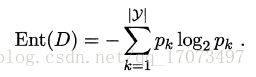 ID3算法使用信息增益为准则来选择划分属性,“信息熵”(information entropy)是度量样本结合纯度的常用指标,假定当前样本集合D中第k类样本所占比例为pk,则样本集合D的信息熵定义为: