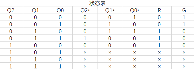 电路共有5个有效状态, 则至少需要3位二进制变量来表示, 设三位二进制变量由高位到低位分别为Q2、Q1、Q0.