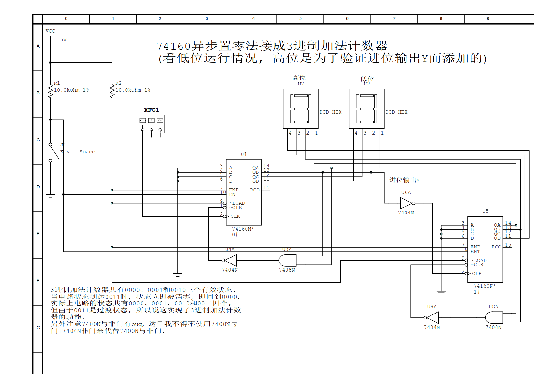 在异步清零过程中没有用到LOAD引脚. 但为了使74160正常计数, 才将LOAD引脚置为1.