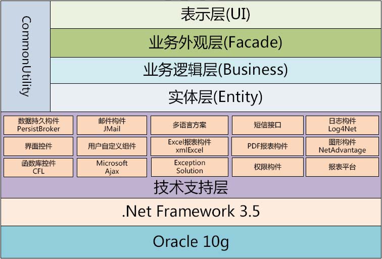 基于.NET 架构实现,同时支持Oracle 和SQL Server 数据库,集成多套成熟的技术构件;