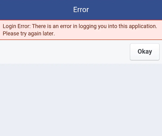 Facebook登录时出现以下错误:Login Error: There is an error in logging you into this application. Please try again later.