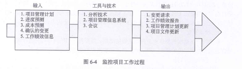 - 监控项目工作:是跟踪、审查和报告项目进展,以实现项目管理计划中确定的绩效目标的过程。项目的监控工作贯穿于项目工作的始终,即不仅要对项目执行进行监控,而且要对项目的穷、规划和收尾进行监控。监控项目工作过程的主要作用是: