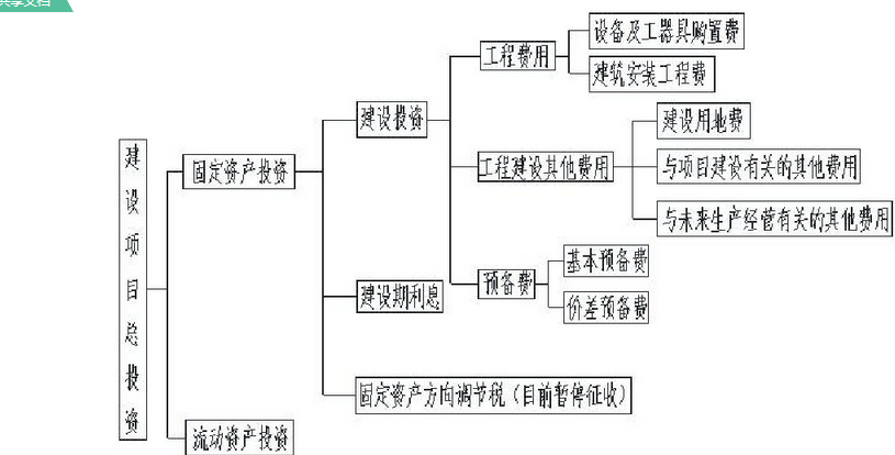 投资分为固定资产投资与流动资产投资,其中固定资产投资又分为建设投资,建设期利息 与固定资产方向调节税