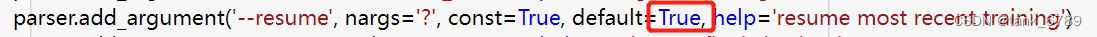 2、修改train.py→resume参数default为True。