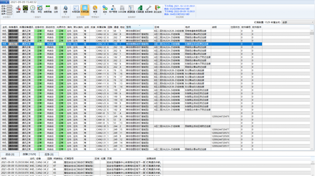 在保障各个场所要求的低消防应急照度的前提下,集中控制型集中电源应急照明系统所选用的灯具,对系统管理维护及后期使用阶段的体验都有所提升。D05工程选用 DC36V、A 类灯具,系统调试前,技术人员对应急照明控制器配接的灯具、集中电源或应急照明配电箱进行地址编码,这样每盏灯具、集中电源或应急照明配电箱便可对应一个独立的识别地址 ;应急照明控制器对其配接的灯具、集中电源或应急照明配电箱进行地址注册,并录入地址注释信息,并对系统部件现场设置情况、应急照明控制器联动控制编程记录,只要其中某盏灯具出现故障,便会通过信号线传给消防控制室应急照明主机,及时提示现场值班人员,根据地址码设置可以准确判断出故障灯具所在的楼栋号 - 楼层号 - 所在位置,第一时间安排人员直接过去维修,便捷的实现系统管理检测和维修工作。