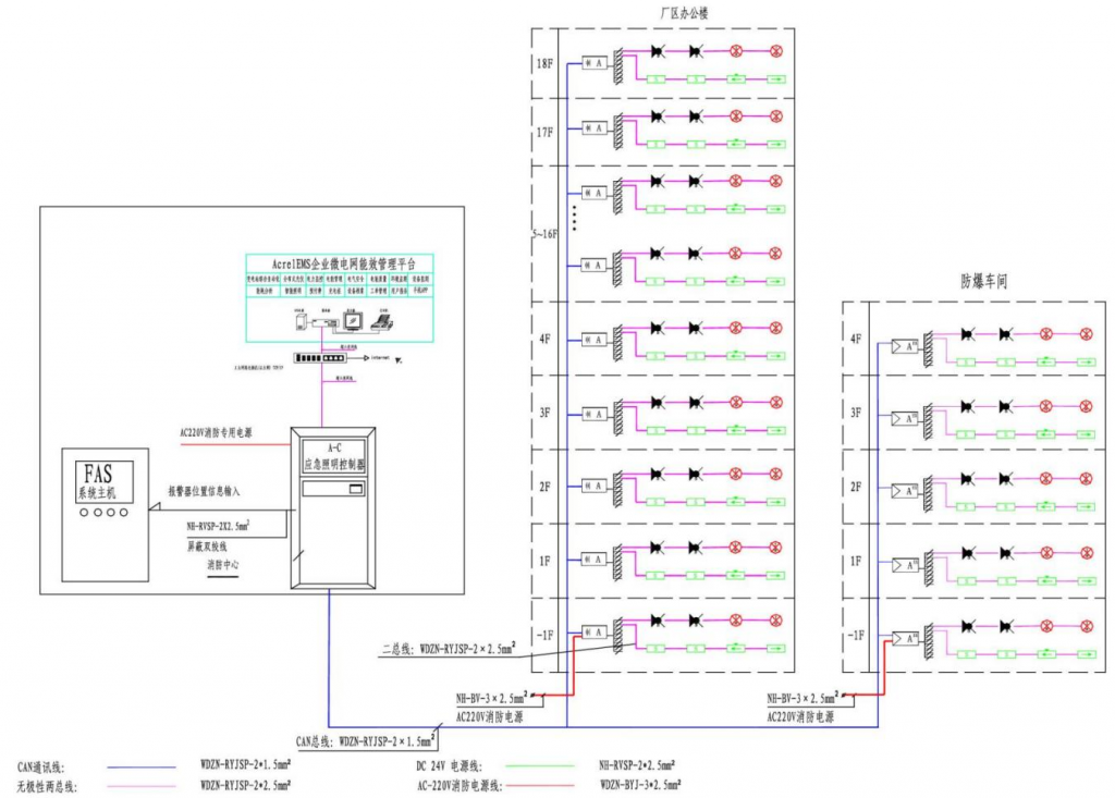 消防应急照明和疏散指示系统主要由应急照明控制器、消防应急照明集中电源或应急照明配电箱、消防应急灯具等几部分组成。该套系统为安科瑞公司完全自主研发,符合国家现行的行业规范,可以满足与AcrelEMS企业微电网管理云平台或火灾自动报警系统等进行数据交换和共享。
