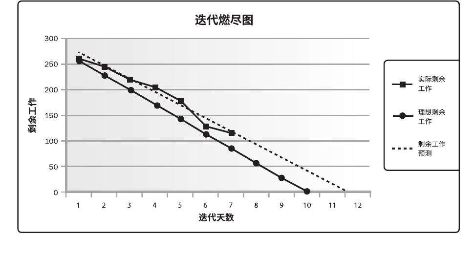 迭代燃尽图,用于追踪迭代未完项中尚待完成的工作。