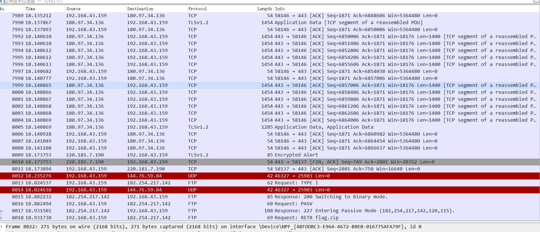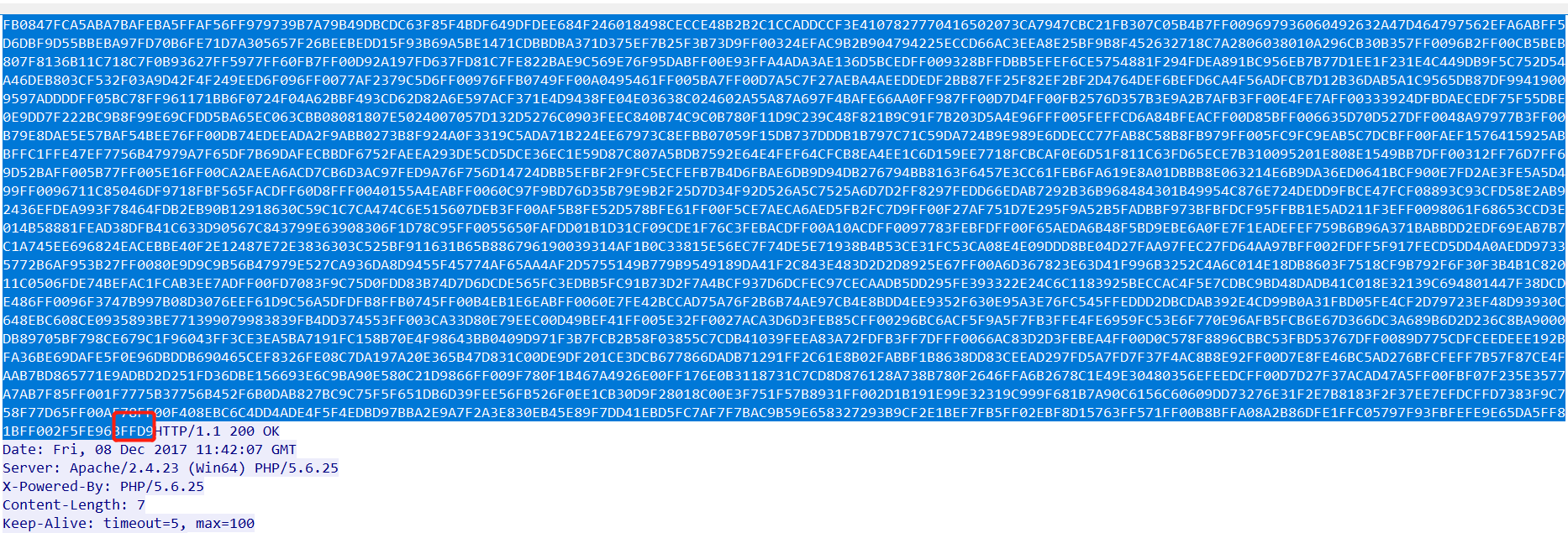5.观察到给定的两组数据只有两个字节有差异,其中前面一个字节代表压力值,后一个字节猜想是校验值,同时注意到二者的差是相同的,于是初步确定校验算法是前面字节的和,但是每次都差 2,于是去掉开头的两个字节 FFFF,得到的校验值低 8 位匹配。通过脚本如下: