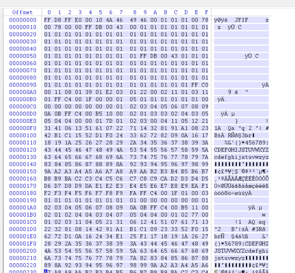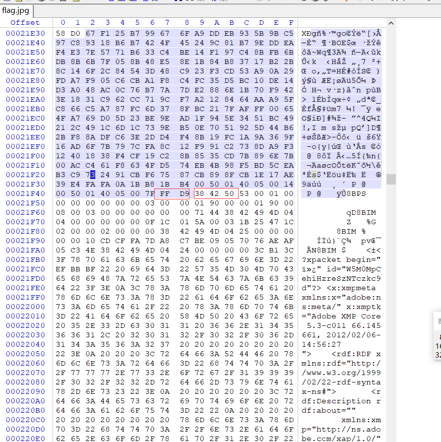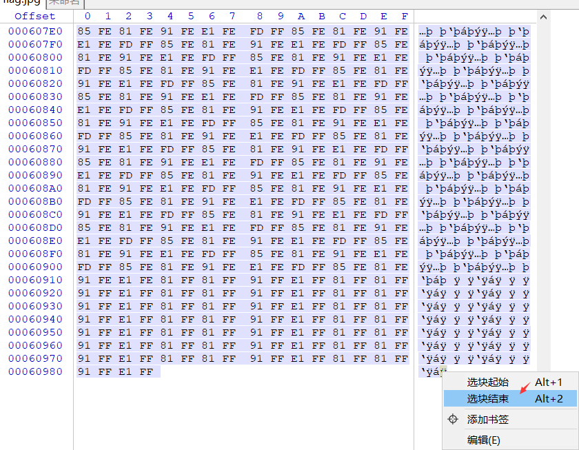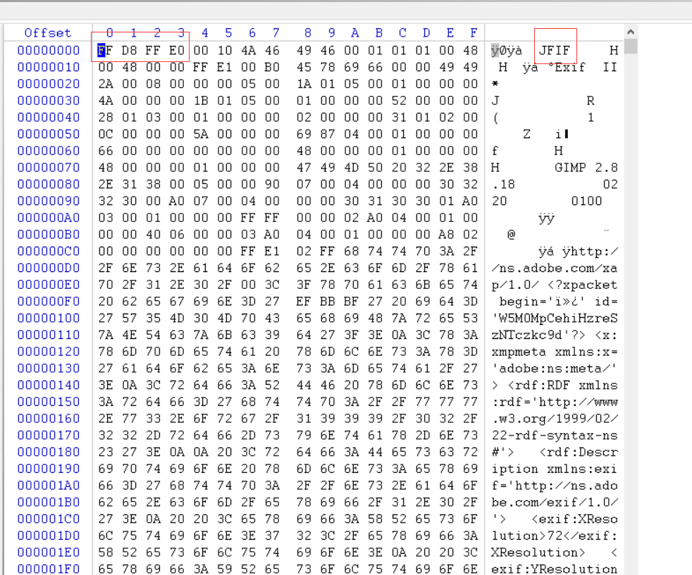 jpg图像开始标志:FF D8 结束标志:FF D9