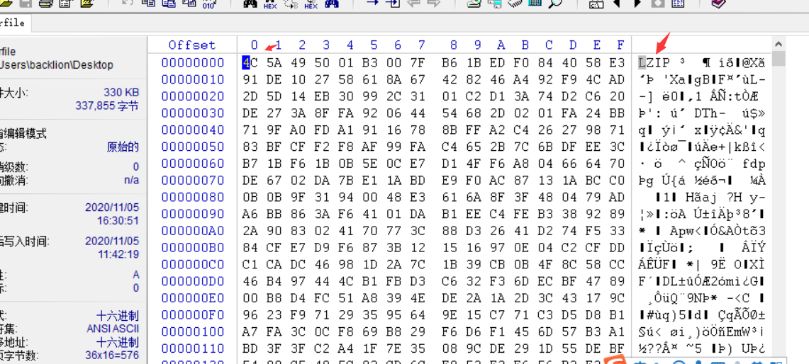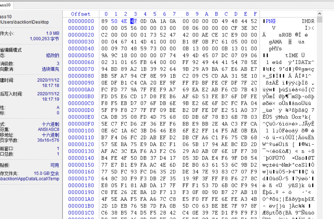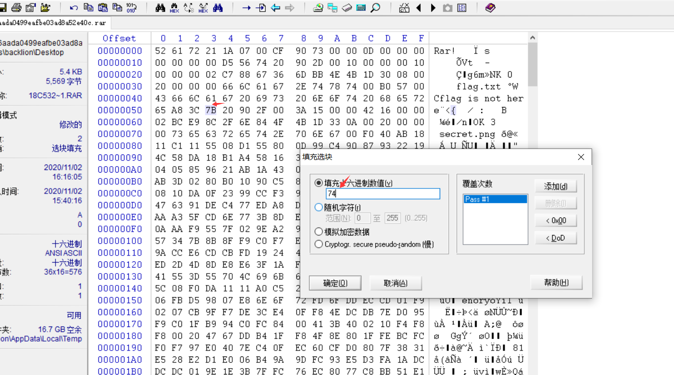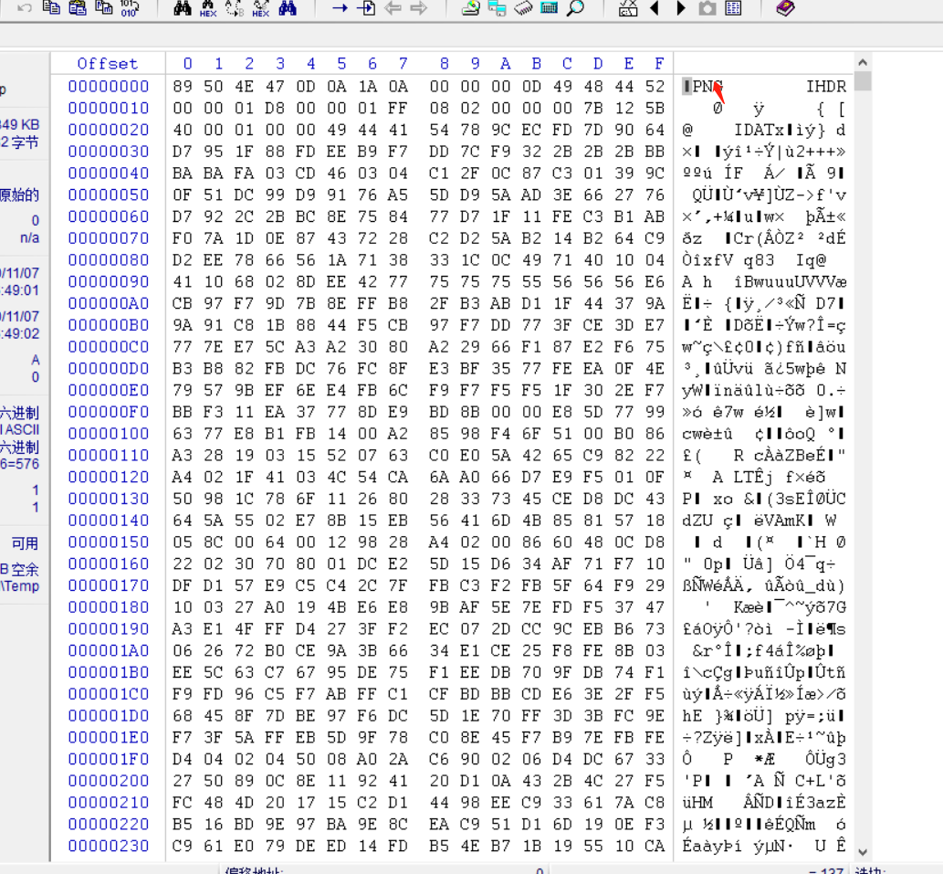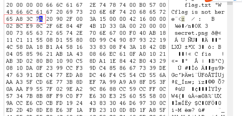 3.保存后解压,再把sercet.png丢到winhex里发现文件头为gif图,将图片后缀名改为.gif。